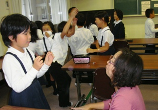 みんなでやさしいまちづくり教室 投稿日時 : 2012/10/30 校長 3.4年生が,耳に障がいのある大野さんから手話を習いました。耳が不自由だとどんなことが困るのかを理解し,その後は,覚えたての手話を使って,挨拶や自己紹介をしました。初めは少し緊張していましたが,一緒に手話で会話することで,親しみを覚え楽しく活動していました。 0 {{options.likeCount}} {{options.likeCount}}