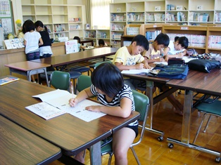 静かな図書室 投稿日時 : 2013/08/27 校長 今日も朝9時から、次々と子どもたちが、やってきました。 まず、職員室へ「おはようございます」と挨拶してから3階の図書室へ上がります。 昨日と同じ子もいますし、別の子もいます。 昨日より、勉強する姿が少なくなり、本を読む子が目立ちます。 きっと夏休みの宿題はすべて終了したようです。 ちょっと余裕の表情で思い思い好きな本を選んで静かに集中して読みふけっています。 三谷小学校の子どもたちは、本当に読書が大好きです。 こうして夏休みでも自分から学校へきて読書に夢中になっている姿が大変嬉しいです。 0 {{options.likeCount}} {{options.likeCount}}