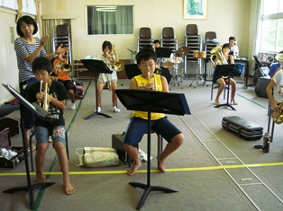 暑さに負けず、ブラスバンド練習 投稿日時 : 2013/08/08 校長 猛暑のため、音楽室から引っ越してクーラーの効く多目的室で全員練習をしました。 9月の運動会で披露できるよう、夏休み中の練習もみんな真剣さが増してきました。 パート練習で練習した成果を、全員練習で合わせます。そこから、次の課題を見つけ各自が、部分的に練習に励みます。連日の猛暑には冷房の効く部屋はありがたいです。 0 {{options.likeCount}} {{options.likeCount}}