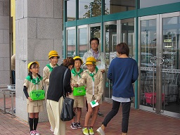 緑の少年団の活動として、11日(日)にアビオシティで、5.6年生が、「緑の募金」をしました。出入り口5ヶ所に分かれて買い物に来る人に大きな声で呼びかけていました。たくさんの人が募金に協力してくださいました。募金額は、48,910円でした。募金で集まったお金は、森林の整備や緑化の推進、緑の少年団の育成などに使われます。ご協力いただいた皆様、ありがとうございました