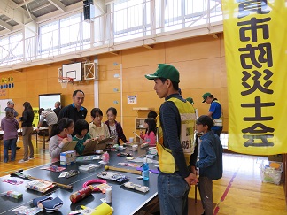 その後、こどもたちは、〇×クイズ、大人はHUG訓練や加賀市防災会の方々のブース【非常食の試食・液状化現象など】の体験などをし、最後に金沢大学准教授の青木先生のご講演を聴きました。防災について考える良い機会でした。