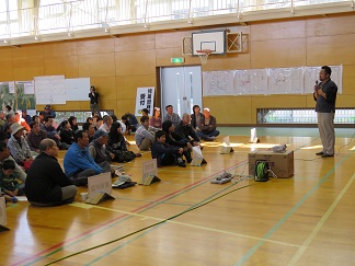 18日の資源回収の後に、地区の自主防災訓練がありました。。「崖崩れ」が発生する恐れがあるという想定で、三谷小学校の体育館が避難所になり、子どもたちや保護者の皆さん、各町の方々が体育館に避難しました。