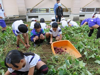 JAのあぐり事業を受けて、5月に植えたさつまいもを掘りました。2限目は1.2.5.6年、3限目に3.4年生が掘りました。収穫は少なかったのですが、作物を作る体験、土に触れる体験ができました。JAの指導してくださった職員の方々、ありがとうございました。