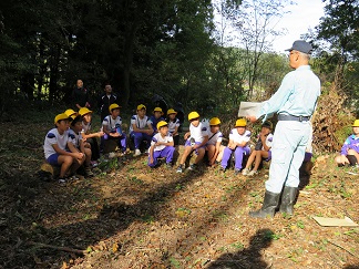 27日5・6年生が曽宇町の「ホーソの森」で里山教室を開きました。三谷地区活性化推進協会の宮永さんと田中さんを講師にお招きしてホーソの森の名前のいわれや里山を守ることについてお話を聞きました。その後、田中さんが準備してくださった木を加工したパーツを使って、機関車を作りました。ブランコや秘密基地も作ってあり、子どもたちは自然を満喫することができました。ホーソの森から、三谷小学校が見えました。地域の方々が三谷の里山を守ってくださっていることを学ぶことができました。ありがとうございました。