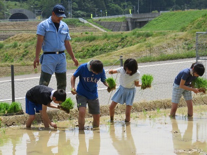 田植えをしました(5年生) 投稿日時 : 2018/05/16 校長 5月16日(水)に5年生11名の子どもたちが、田植えを行いました。今年も、直下町の西山さんにお世話いただき、学校の下の田んぼで体験しました。おうちで田植えの手伝いをしている子も、裸足で田んぼに入って手で植える経験は初めての子がほとんどでした。第1歩は、「うわ~」と声を上げていた子たちも、だんだん慣れてきて、田んぼの土の感触を楽しんでいました。田植えの後には、「狭い面積と思ったけど、やってみたら大変だった」「全部を手でやっていた昔の人は、本当に大変だったと思う」「簡単そうに見えたけど、けっこう難しかった」と感想を話してくれました。田んぼに入って苗を植えるという体験は、子どもたちのとって本当に貴重なものです。お世話いただく西山さんには本当に感謝しております。 0 {{options.likeCount}} {{options.likeCount}}