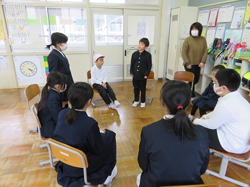 2月の縦割り交流会 投稿日時 : 2019/02/07 校長 2月7日(木)に2月の縦割り交流会を開きました。インフルエンザが流行していますが、欠席者なしで全員が参加できました。前回各班ごとに話すテーマを決めて、それぞれが発表しました。全員が発表した後は、質問したり、感想を伝えたりしました。次回は最後なので、全員が集まって行う予定です。☆「好きな生き物」☆「好きなテレビ番組」☆「恵方巻きを食べてお願いしたいこと」☆「次の学年でがんばりたいこと」☆「この学年で一番楽しかったこと」 0 {{options.likeCount}} {{options.likeCount}}