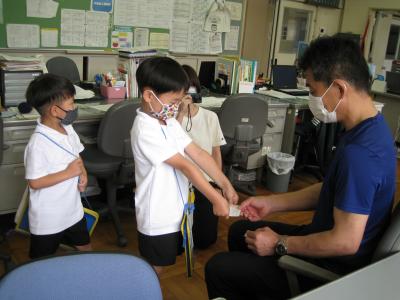 職員室に入るとちょっと緊張して、言うことを忘れそうになることもありますが、うまく言えて、サインをもらうとにっこりしています。
