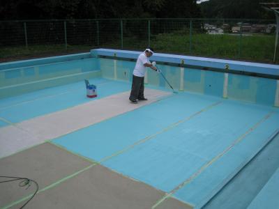 プールの底のペンキが剥がれ、コンクリート部分がむき出しになっているところが多かったので、ペンキを塗り直していただきました。