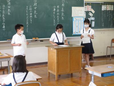 各委員会と学級の役員は名前を呼ばれると、とても立派な返事をして立ちました。