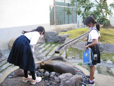 子ども達がとても気に入ったのは、中庭にある水琴窟でした。