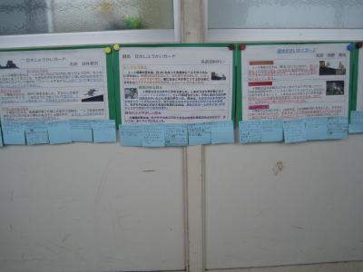 各学年の掲示板には、学習の成果が分かる様々な作品が掲示されています。