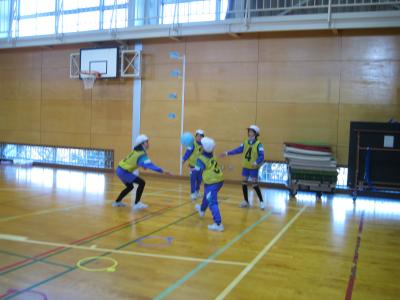 3~6年生は12月の体育で、「ネット型ゲーム」の学習として、ソフトバレーボールをしました。ボールはとても軽いものなので、ふわりと動き、小学生も楽しく取り組めます。
