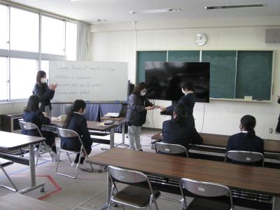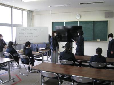 1年間お世話になった橋立中学校の村田先生と、9月後半からお世話になった外国語指導助手の三谷先生から、英語でメッセージがありました。