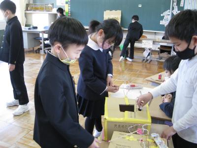 3年生はこの1年間の理科で学習したことを使って、おもちゃを作りました。