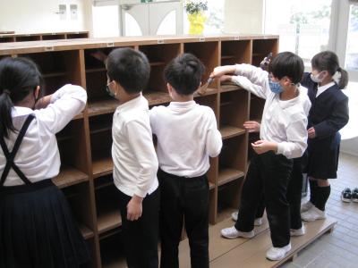 1年生は名前を書く場所だと思っていたので、実際に脱ぎ履きして確かめていました。