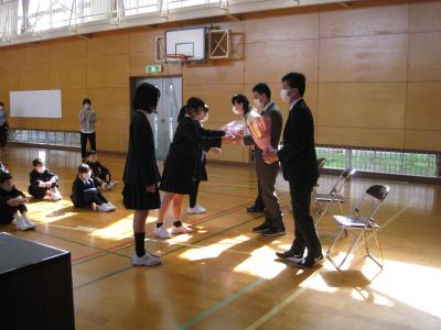3人の教職員が異動することになり、今日は離任式を行いました。