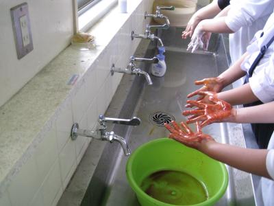 健康委員会は、正しい手洗いのよさについて、実験していました。