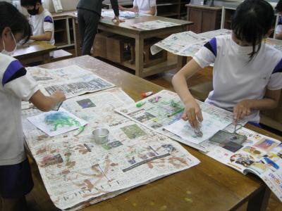 5・6年生が図工の時間に「いろどり、いろいろ」という学習を楽しそうにしていました。