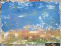 画用紙に液体のりを自由にたらし、チョークの粉をぼかし網で散らばせたり、指や木片で色を広がらせたりして、思い思いの作品を作っていました。
