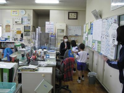 先週から1年生がいろいろな先生のところを回り、自己紹介をしています。