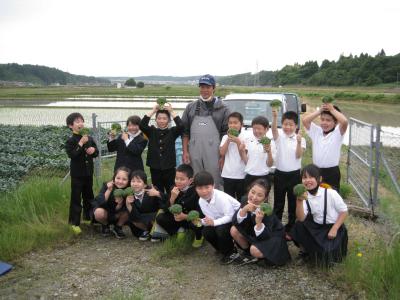 今、ブロッコリーの収穫時期で、学校のすぐそばの畑でも毎日のように収穫がされています。