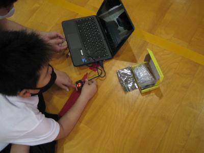 インテトラスの中さんが講師として来てくださり、マイクロビットの接続やプログラミングの仕方を教えてくださいました