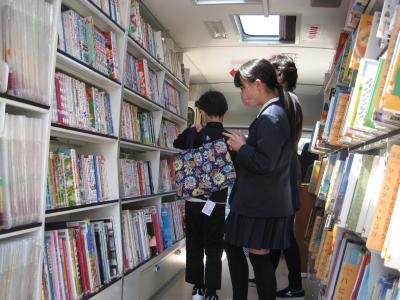 今日は、今年度最初の自動車文庫「かもまる号」の日でした。