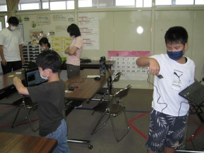 夏休みの初日、4年生以上の希望者を対象に、プログラミング教室が行われました。