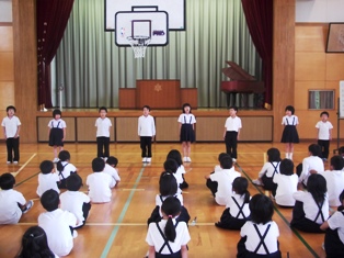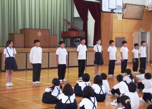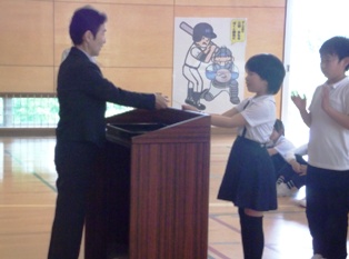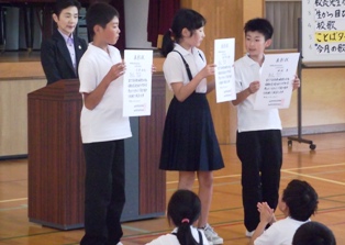 全校集会 投稿日時 : 2013/06/04 校長 まず,連合運動会の表彰をしました。加賀市の目標記録を突破した3人を表彰するとともに,大会に出場し,自己記録を更新した6年生全員を称えました。 次に,読書ノートを頑張った児童を表彰しました。春から,2500ページ以上読んだ4年生と7500ページ以上読んだ6年生をたたえ,特性栞を手渡しました。 「ことばタイム」は2年生と6年生が発表しました。学年のめあてに沿って大変堂々と音読しました。 0 {{options.likeCount}} {{options.likeCount}}