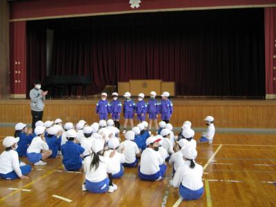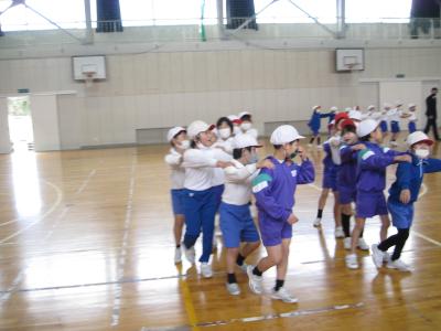 今年度、運動会で表現運動に取り組んでいないので、1~3年生はリズムダンス、4~6年生は初挑戦の組体操を練習し、披露し合いました。