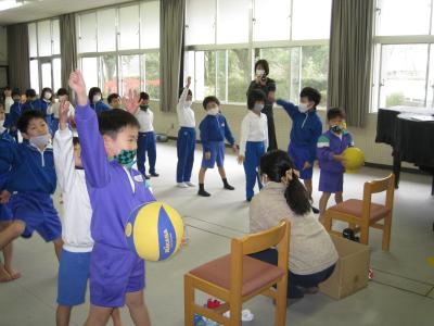 1年生は、しりとりやなわとび、ボール送りゲームなどをしました。保育園のときの友達も何人かいて、久しぶりに会えてお互いにうれしそうでした。
