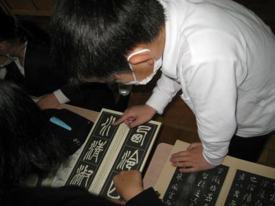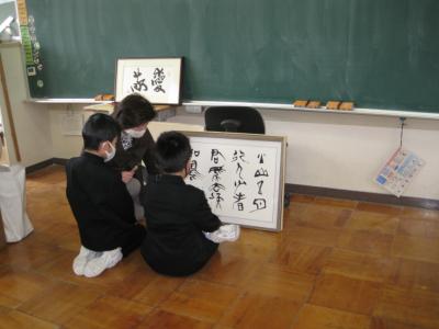 難しい字体で読めない文字がたくさんありましたが、子どもたちはなんとかその字を読もうとしたり、作品の美しさを自分たちの感性で味わったりしていました。