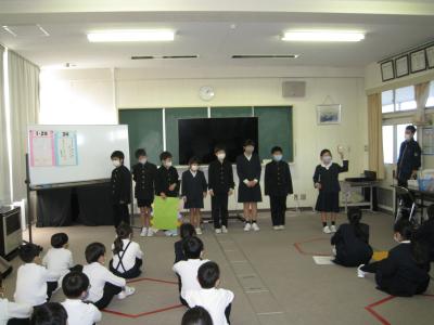 2年生は自己紹介で、名前と好きな物を言いました。緊張したそうですが、大きな声で言えました。