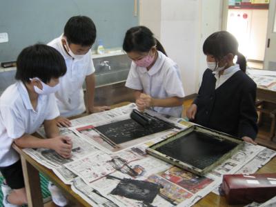 このあと、絵の具で色をつけてカラー版画になるそうです。仕上がりが楽しみです。