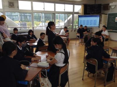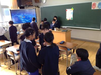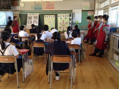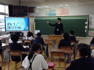 (株)日本海開発の南さんが6年生と5年生にSDGsについてお話をしてくださいました。日本海開発が積極的に取り組んでいることを聞き、6年生には2030年の能美市の未来を考える子どもサミットを行うために演習をしました。5年生には食品ロスの話から環境問題も考えました。