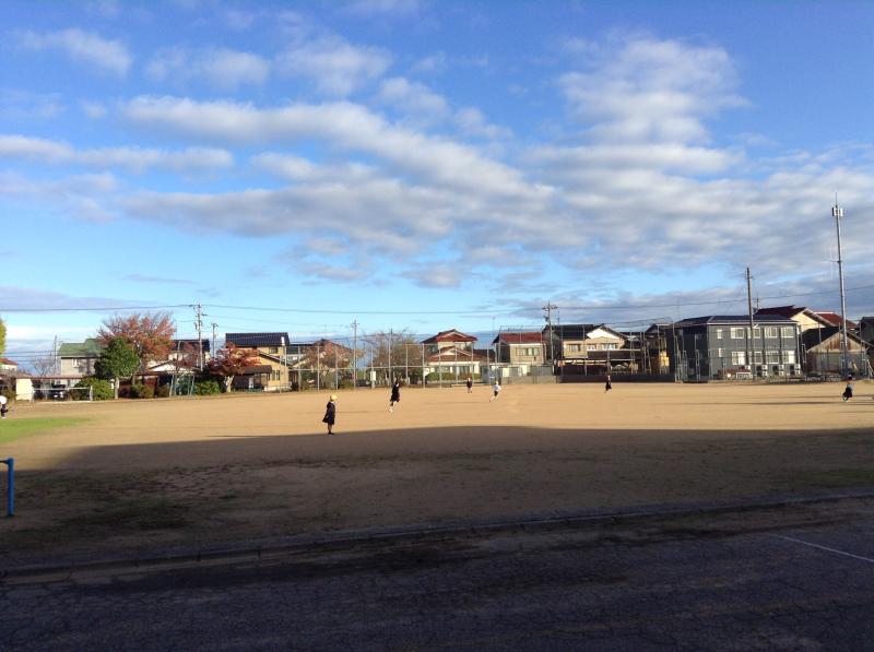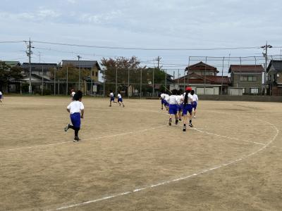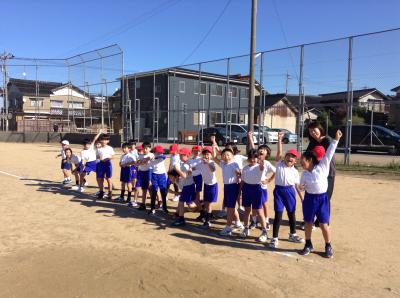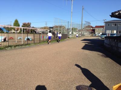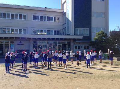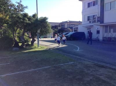 朝、複数の学年の人が運動場で遊んでいました。寒くなってきましたが、ほっこりする1コマです。