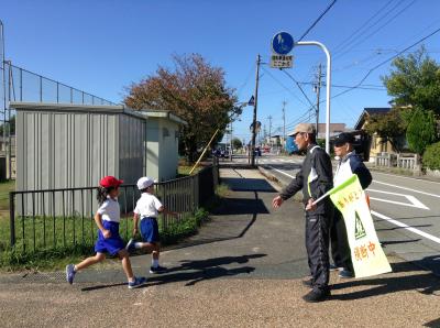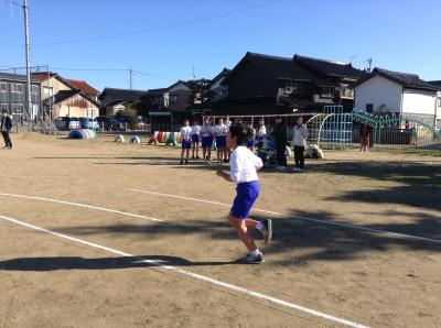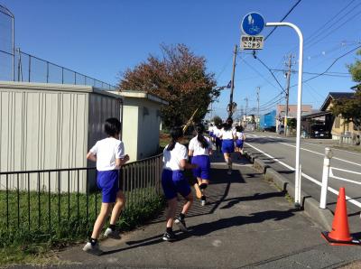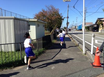 天候の影響で1日遅れの持久走記録会、お天気に恵まれ高学年から順に行うことができました。道路での安全見守りや応援をしてくださいました地域の皆様、ありがとうございます。子供たちは自分の目標に向かって頑張りました。
