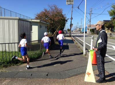 体育の時間には地域の方々が道路のポイントに立ち、コースを走りました。