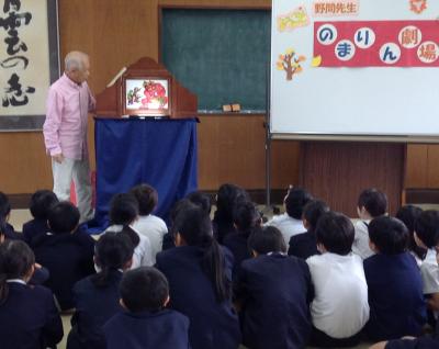 1学期は1,2年生対象でのまりんの紙芝居を楽しみましたが、2学期は3,4年生がのまりん劇場を楽しみました。