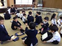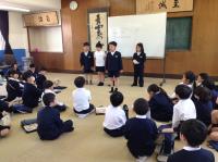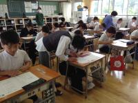 3年生から6年生の書初めの初めの時間に川北町の山本さんにゲストティーチャーとしてきていただき準備のしかたから長い紙での書き方等、書初めの基本を教えていただきました。2時間続きの時間でしたが、みんな集中して考えながら書くことができました。