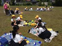 遠足予備日の日、町探検に行き、三ツ口の公園でお弁当を食べました。