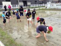 JAや地域の農家の方の協力で、5年生は田植え体験を行いました。
