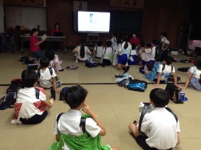 文化庁の巡回公演を申し込んだところ、びわこホールがオペラを公演してくださることになり、9月のワークショップと今回の本公演が開催されました。当日は全校児童と、ご都合のつく保護者・地域の方も参観していただきました。迫力のある歌声と生の伴奏がとても素晴らしかったですね。