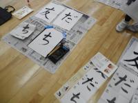 4月から毛筆を始めている3年生にとっては、長い下敷き、太い筆、大きな紙に、ドキドキしながらのスタートです。