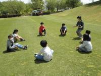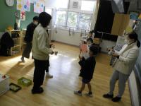 パラシュート、ボーリング、けん玉、シュートゲームなど、どれもまつぼっくりやドングリなど、秋を利用したおもちゃを工夫して作り、ルールも自分たちで決めたようです。