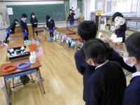 東レは、能美市にも工場を持つ世界的な企業です。最先端の東レの技術が、実は「小学5年生の理科の学習とつながっている!」ということで、出前授業をしていただきました。(これは、「産・官・学」で子どもの未来を生きる力の育成をめざすという「能美市未来創造」の取組です。今年度は本校と和気小が選ばれました)