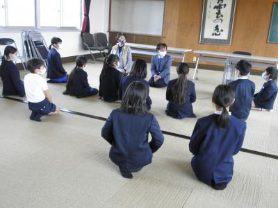また、6年生の教室では「オンライン辰中へ行こう!」として、辰口中学校とつないでの学校紹介の時間を頂きました。2学期に見学させていただいた校舎を思い出し、入学への希望と自覚を高めたのではないでしょうか。卒業まで、あと1か月となりました。一瞬一瞬を大切に過ごしていきたいですね。