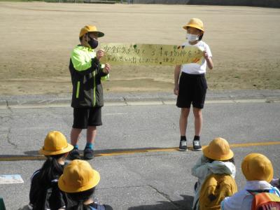 子ども消防学校での体験や能美市防災無線を使っての防火の呼びかけ放送など、様々な防火活動が認められたものです。(児童会の子どもたちが中心になって取り組んでいます)