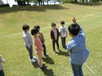 グループに分かれて学校案内。職員室の入り方も紹介してくれました。最後は体育館で一緒に思い切り遊びました。