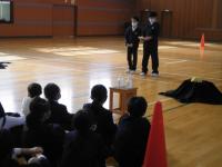 警察の方、交通推進隊の方に来ていただき、交通安全教室を開きました。実際に自転車に乗ったり、歩いたりすることで、どんなことに気をつければよいかを考えることができました。